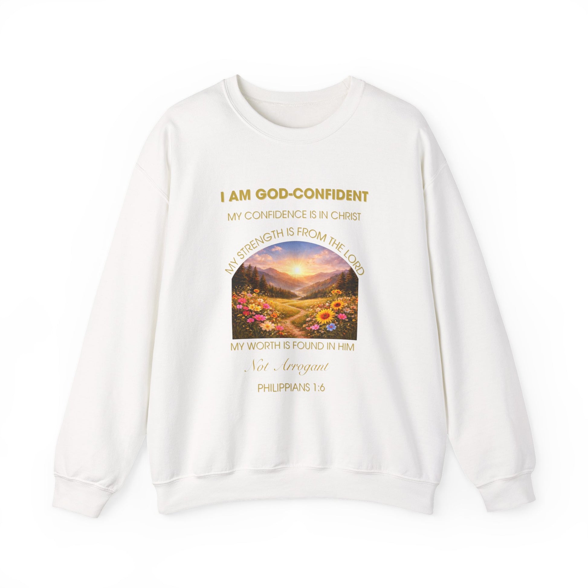 Christian Crewneck Sweatshirt Phil. 1:6— "I Am God-Confident" Inspirational Scripture Design